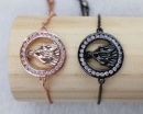 Material: Brass with real gold plated, with cubic zircon Color: Gold plated, Rose gold plated, Black color, Rhodium plated Size: 24.3x19.9mm Weight: 5.1g MOQ: 50PCS each color Delivery time: one week