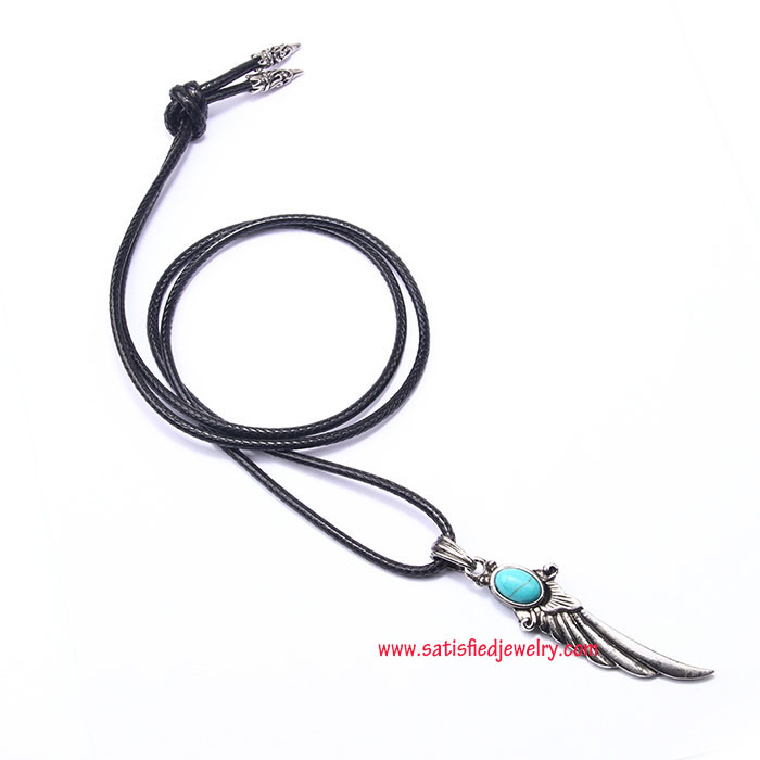 Material: Waxed rope + alloy parts Color: as show in the photo Size: Waxed rope perimeter is 99cm, the alloy pendant size is 8x2cm Weight: 26g MOQ: 120pcs/color Delivery time: one week