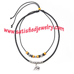 Material: Leather + alloy parts + wood beads Color: as show in the photo Size: length is 45cm, extend line is 14cm Weight: 18g MOQ: 120pcs/color Delivery time: one week