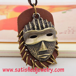 Material: leather + alloy parts Color: as show in the photo Size: Perimeter is 40-45cm, the pendant size is 5.5x4cm Weight: 26g MOQ: 120pcs/color Delivery time: one week