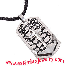 Material: Stainless steel + waxed rope Color: stainless steel color Size: length is 30cm, the pendant size is 5x3cm Weight: 24g MOQ: 120pcs/color Delivery time: one week