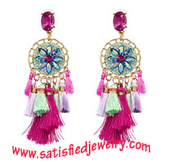 Material: Tassel + alloy parts Color: multi color Size: 4x10cm Weight: 26g MOQ: 120pairs/color Delivery time: one week