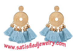 Material: Tassel + alloy parts Color: red / blue / black / brown / pink / cream Size: 6.5x7.5cm Weight: 27g MOQ: 120pairs/color Delivery time: one week
