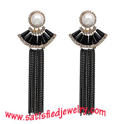 Material: Tassel + alloy parts + cubic zircon stone Color: black / red / crystal AB Size: 8x3.2cm Weight: 19g MOQ: 120pairs/color Delivery time: one week