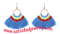Material: Tassel + alloy parts Color: blue / orange Size: 7.5x7.5cm Weight: 6g MOQ: 120pairs/color Delivery time: one week
