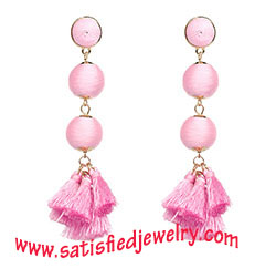 Material: Tassel + alloy parts Color: purple / red / green / pink / black / fuchsia Size: 10.5x3.5cm Weight: 19g MOQ: 120pairs/color Delivery time: one week