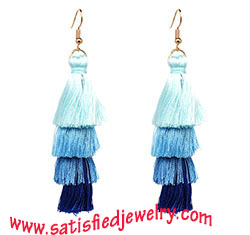 Material: Tassel + alloy parts Color: blue multi / pink multi / black / orange multi Size: 9.5x2.8cm Weight: 9g MOQ: 120pairs/color Delivery time: one week