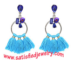 Material: Tassel + alloy parts Color: blue / pink / red / cream / black Size: 5x4cm MOQ: 120pairs/color Delivery time: one week