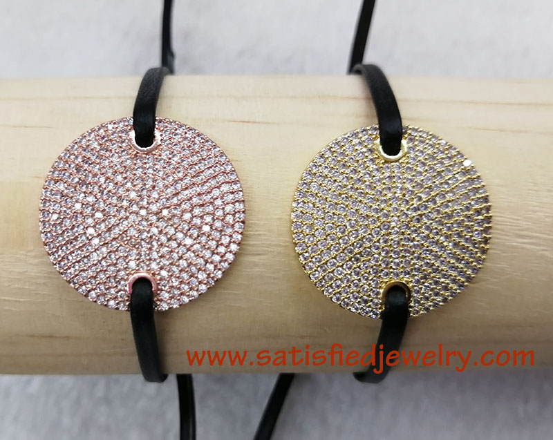 Material: Brass with real gold plated, with cubic zircon Color: Gold plated, Rose gold plated, Black color, Rhodium plated Size: 24x24.7mm Weight: 4.5g MOQ: 50PCS each color Delivery time: one week