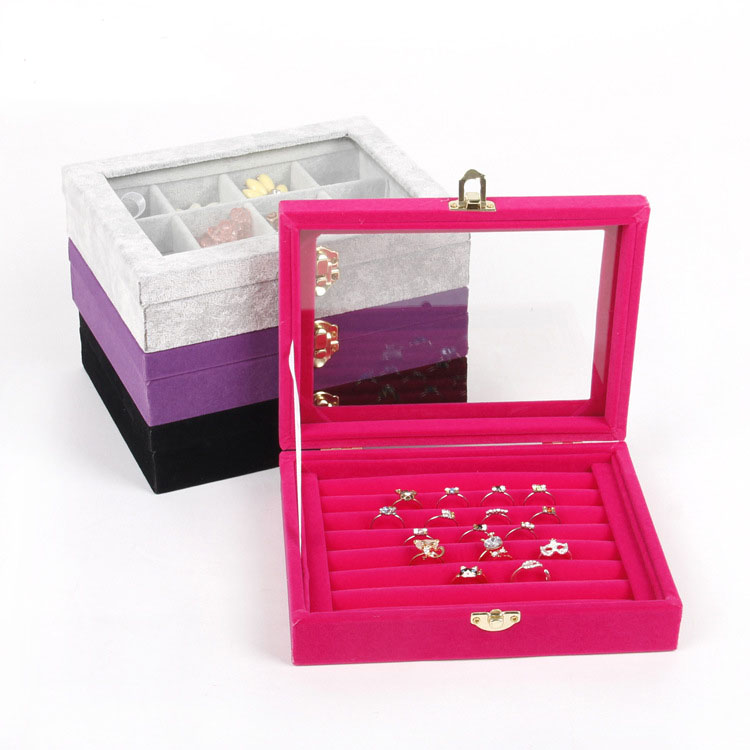 Material: Inside with composite plate, outside with flannelette, transparent glass Color: grey/ rose / purple / black sizes: 20.2x15.2x5cm MOQ: 50PCS/design Delivery time: one week