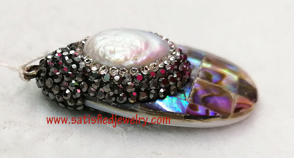 Material: Real shell with crystal stones around Type: New design Size: 43x30mm Weight: 12.3g MOQ: 20PCS Delivery time: one week