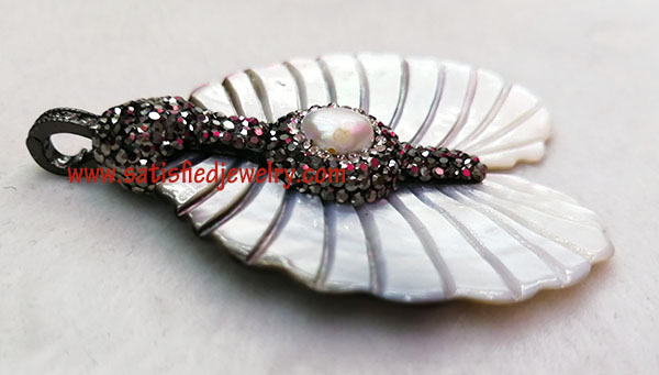 Material: Real shell with crystal stones around Type: New design Size: 52x67mm Weight: 14.7g MOQ: 20PCS Delivery time: one week