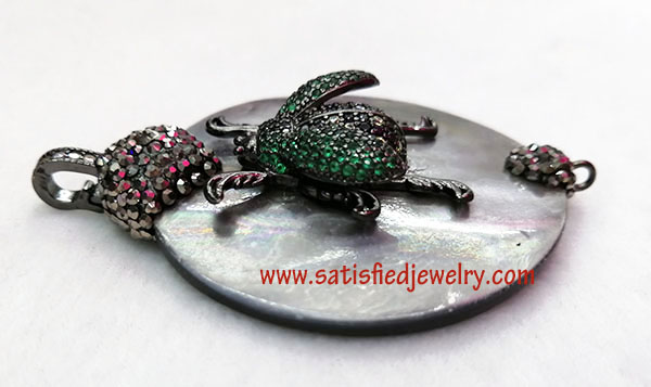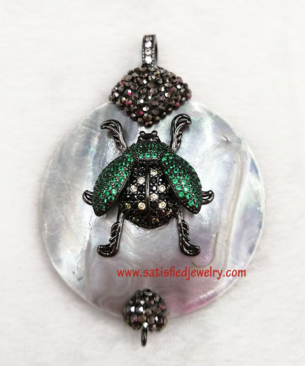 Material: Real shell with insect with cubic zircon Type: New design Size: 69x50mm Insect size: 28x29.5mm Weight: 21g MOQ: 20PCS Delivery time: one week