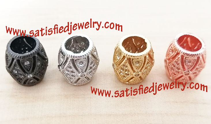 Material: Brass material with real gold plated, with cubic zircon Color: Gold plated, Rose gold plated, Black color, Rhodium plated Size: 10.56x10mm, the hole inside diameter is 5.3mm Weight: 1.9g/piece MOQ: 50PCS each color Delivery time: one week