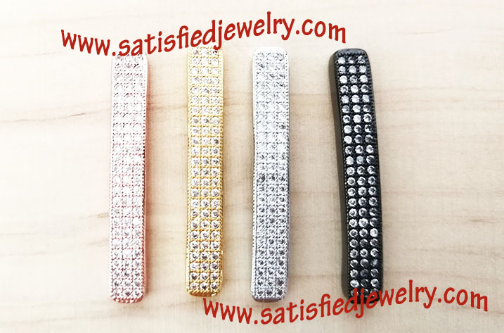 Material: Brass material with real gold plated, with cubic zircon Color: Gold plated, Rose gold plated, Black color, Rhodium plated Size: 35.8x5.1mm, the hole inside diameter is 1.5mm Weight: 2.6g/piece MOQ: 50PCS each color Delivery time: one week