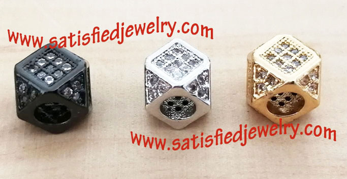 Material: Brass material with real gold plated, with cubic zircon Color: Gold plated, Rose gold plated, Black color, Rhodium plated Size: 9.6x7mm, the hole in the head inside diameter is 3.4mm Weight: 1.3g/piece MOQ: 50PCS each color Delivery time: one week